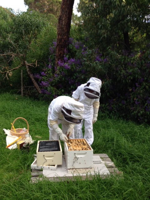 I returned to Anglesea last weekend and visited Felicity and Marc’s beehive for the second time. What a deeply humbling experience it is to get up close and personal with bees and to observe how they work as a community, every member doing their bit for the whole. And, needless to say, it’s the girls who do all the work. In a typical colony there’s one queen bee, approximately one thousand male drones whose only job is to inseminate the queen, and about 60,000 female workers who are responsible for all the feeding, cleaning and nursing jobs and for defending the hive – unlike the boys, the girls do have stingers. Go girls…